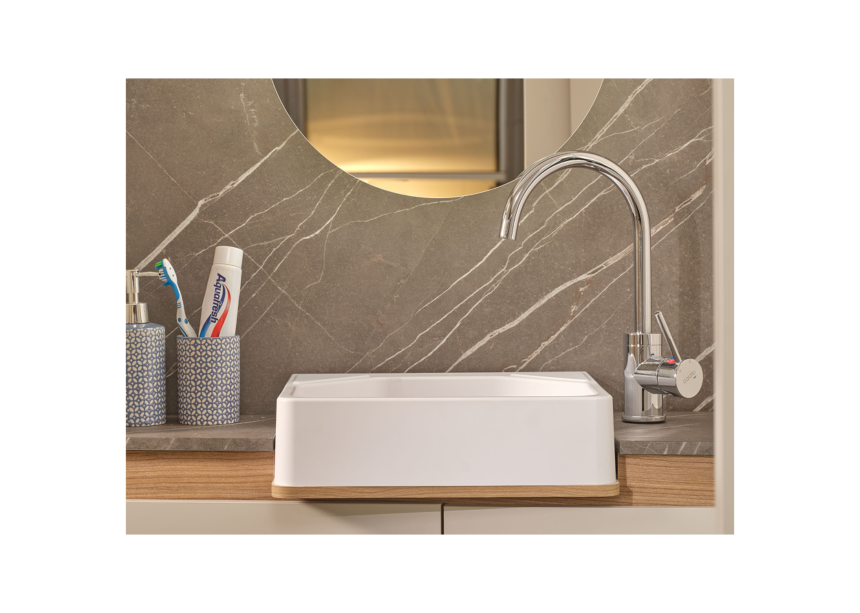- NEW Belfast-style washroom hand basin with swan-neck mixer tap