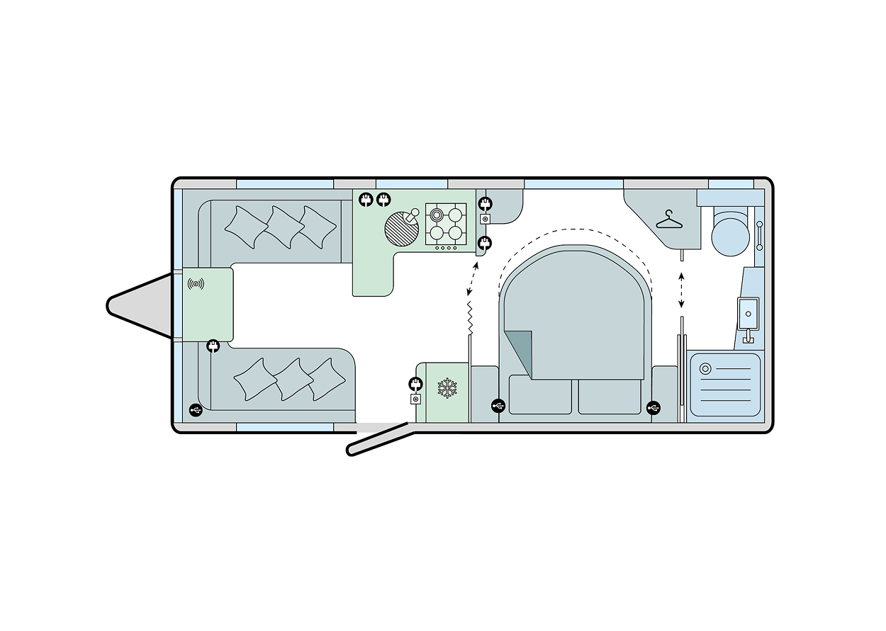 The Bailey Alicanto Grande Deluxe Sintra combines modern aesthetics with practical functionality, making it perfect for quality-conscious caravanners. Its unique layout and upscale features ensure that every journey is not just a trip but an unforgettable experience.