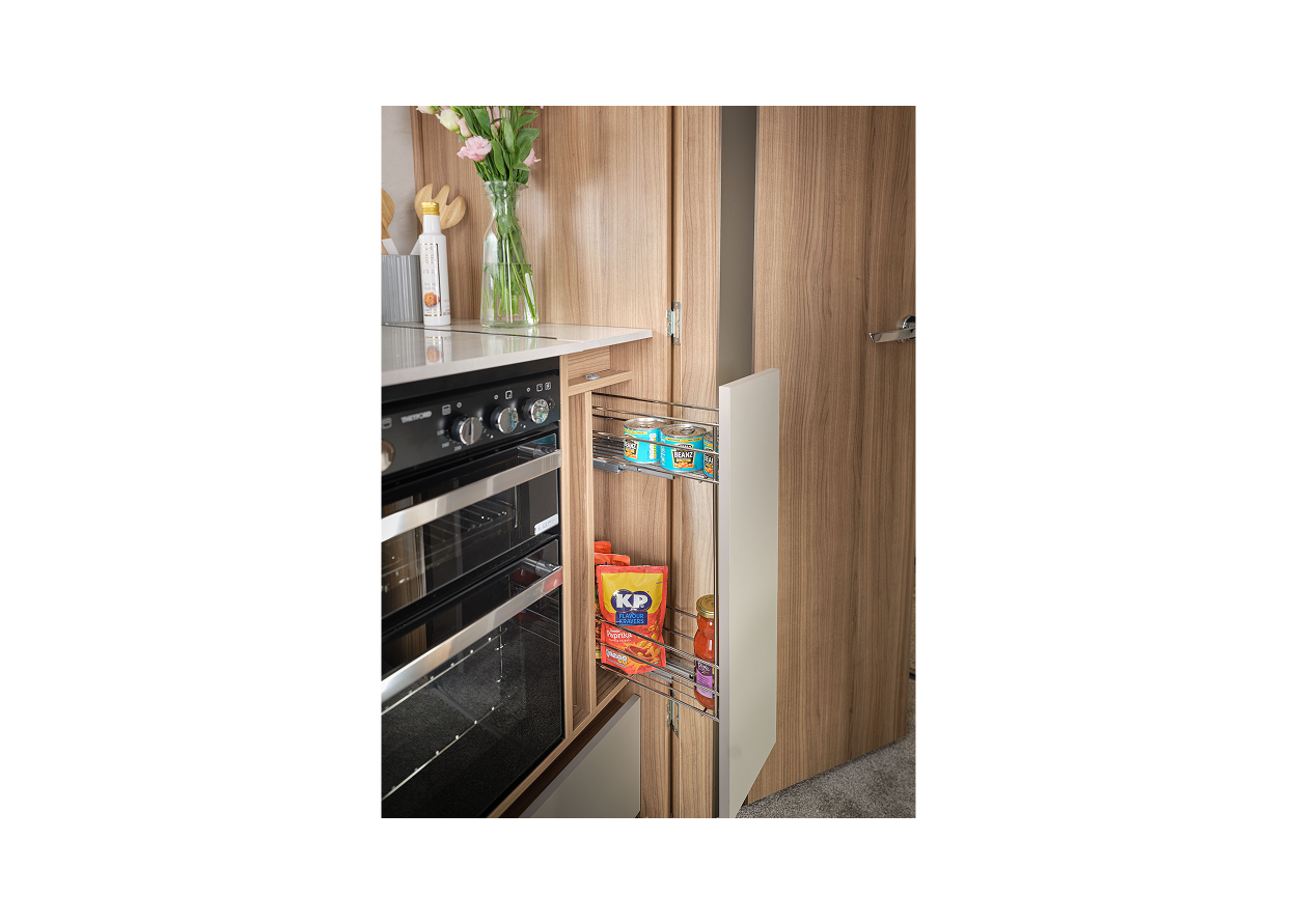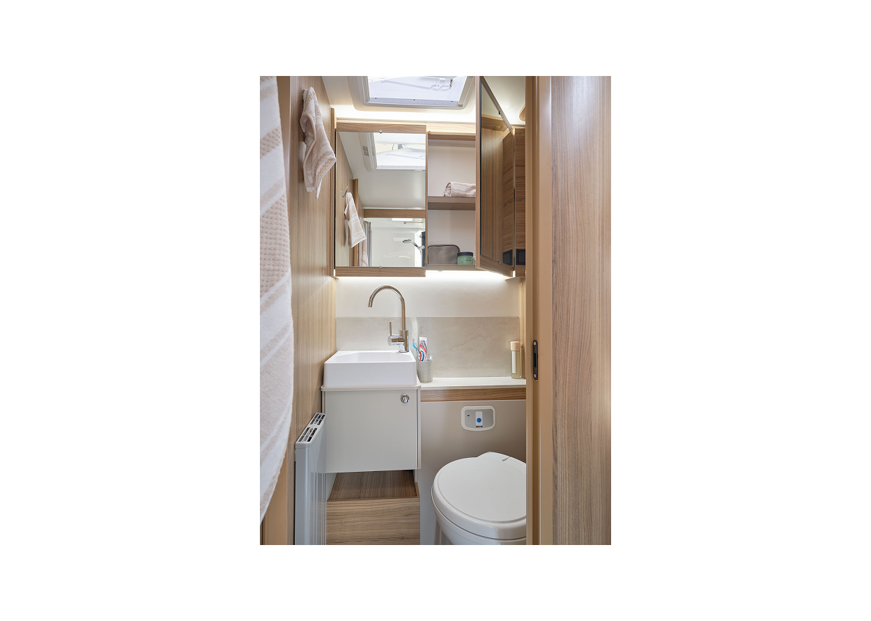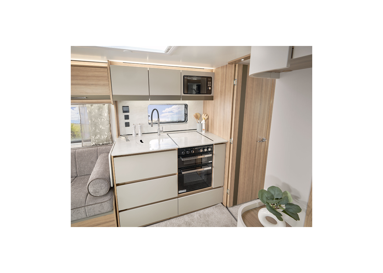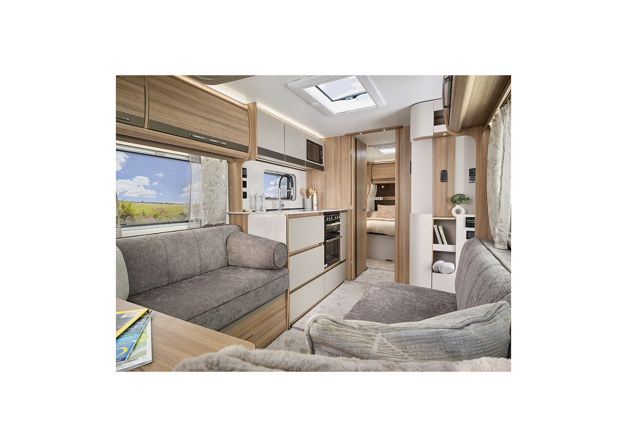- Rear bedroom with a fixed island bed and high-quality mattress