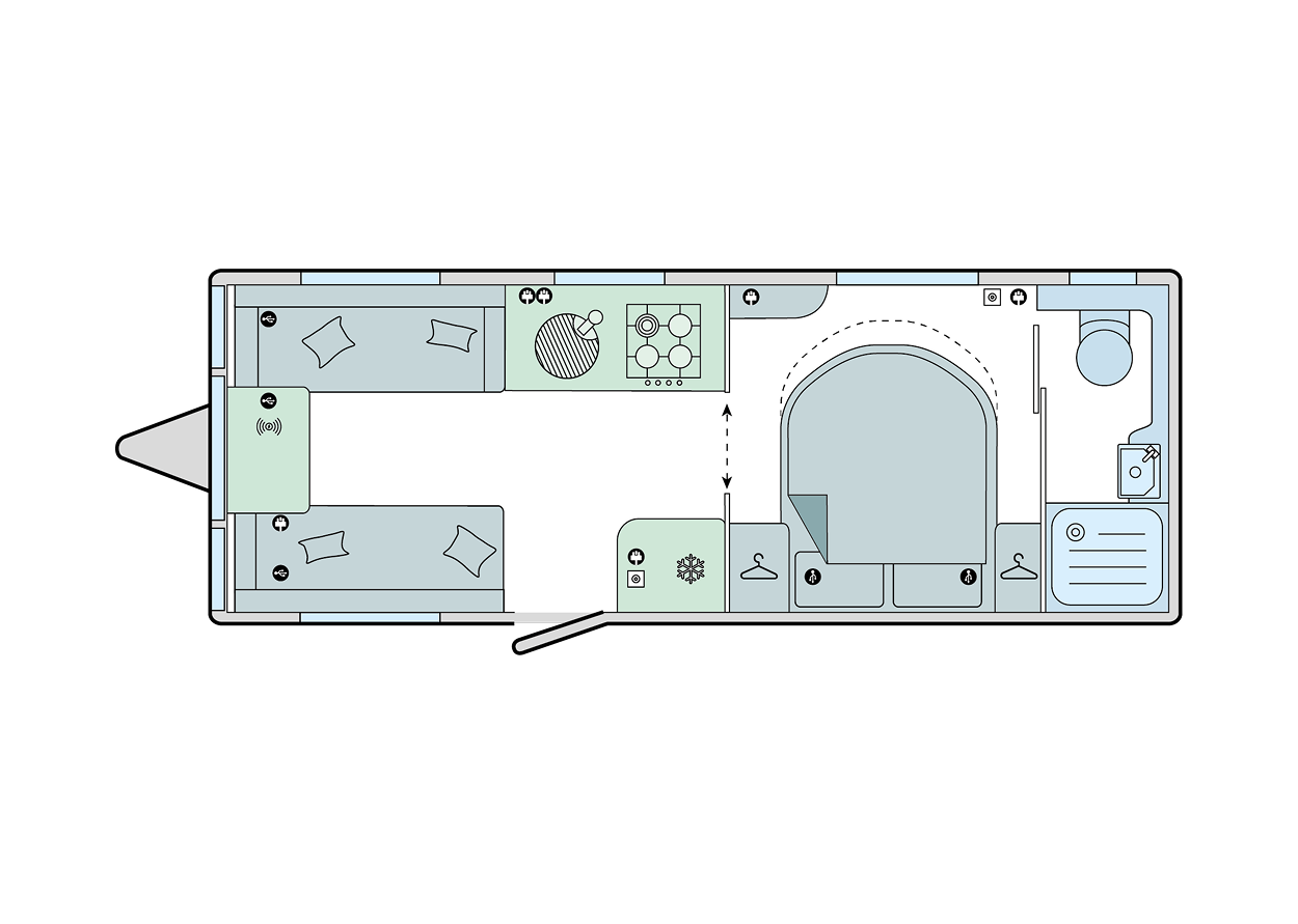 - Front lounge transforms into a double bed