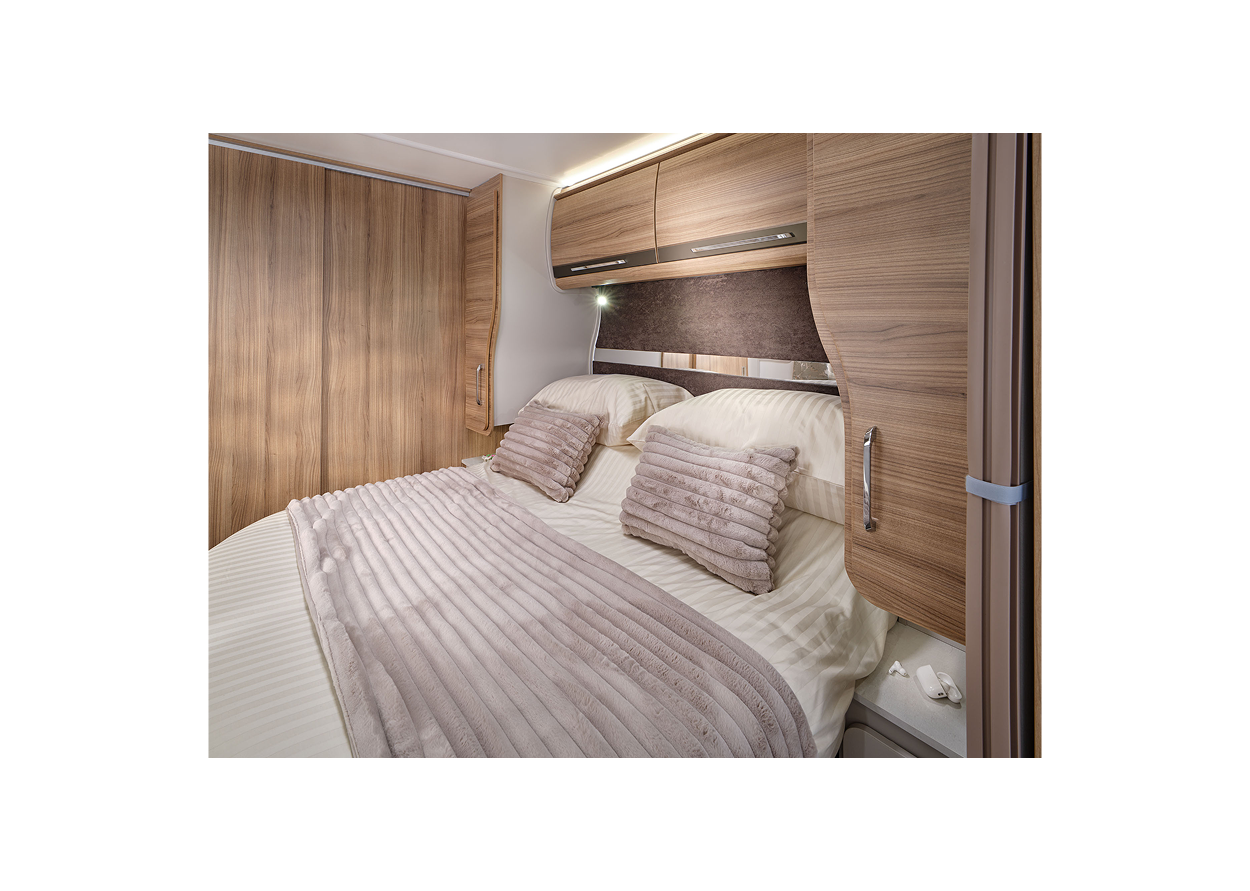 - Luxurious fixed island bed layout