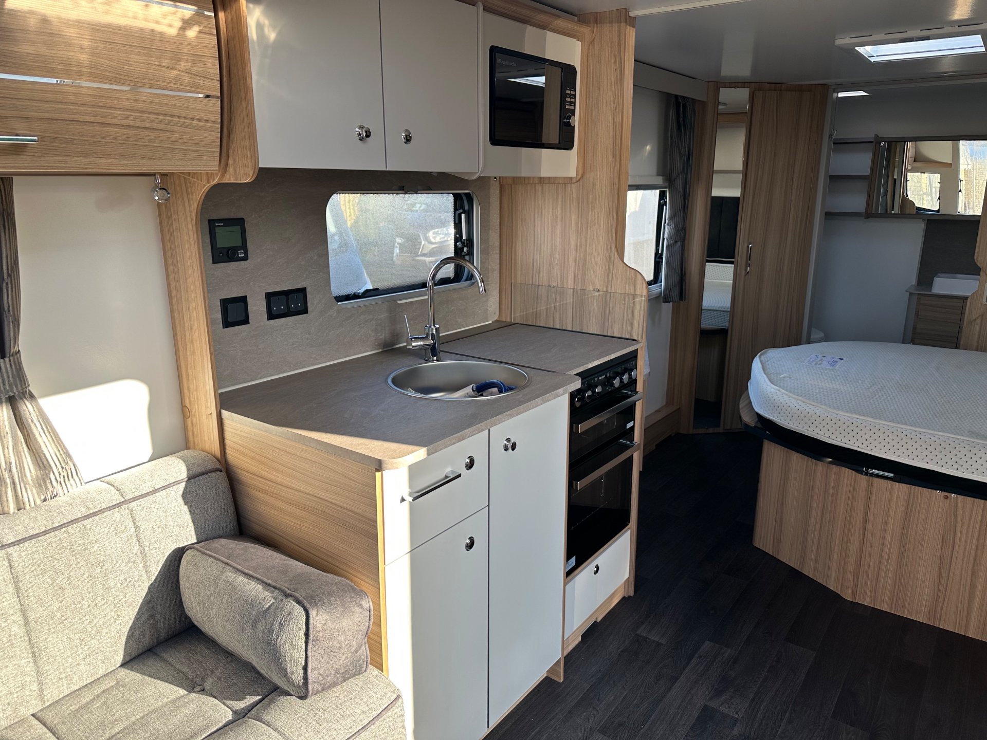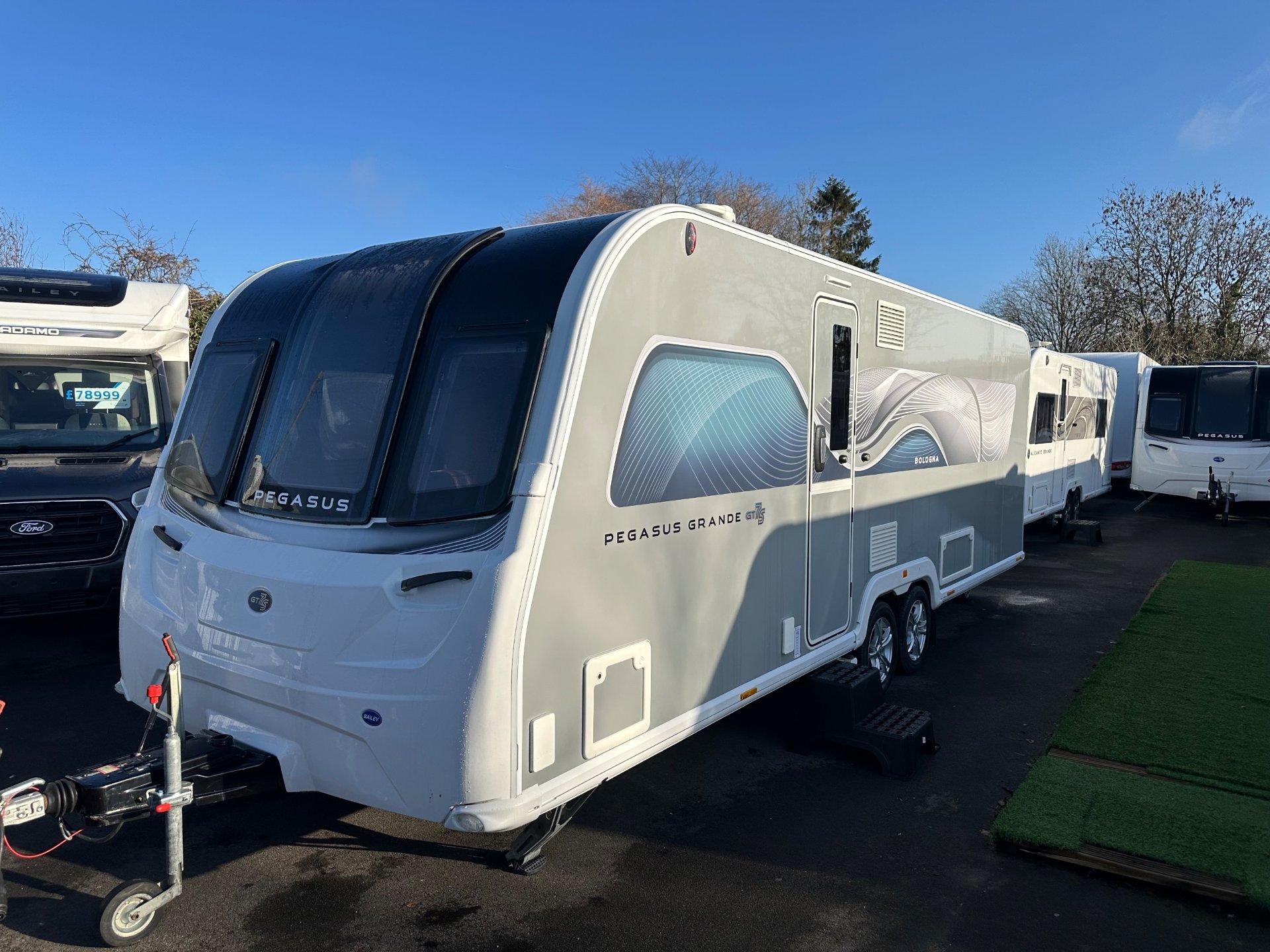 2024 Bailey Pegasus Grande gt75 Bologna supplied by us from new offer the transvers island bed layout with a end washroom on a 8' body twin axle giving plenty of living room and a very open feel comes supplied with Alko Trailer control Solar panels, external gas point, external 240v, 2wd motor mover fitted.