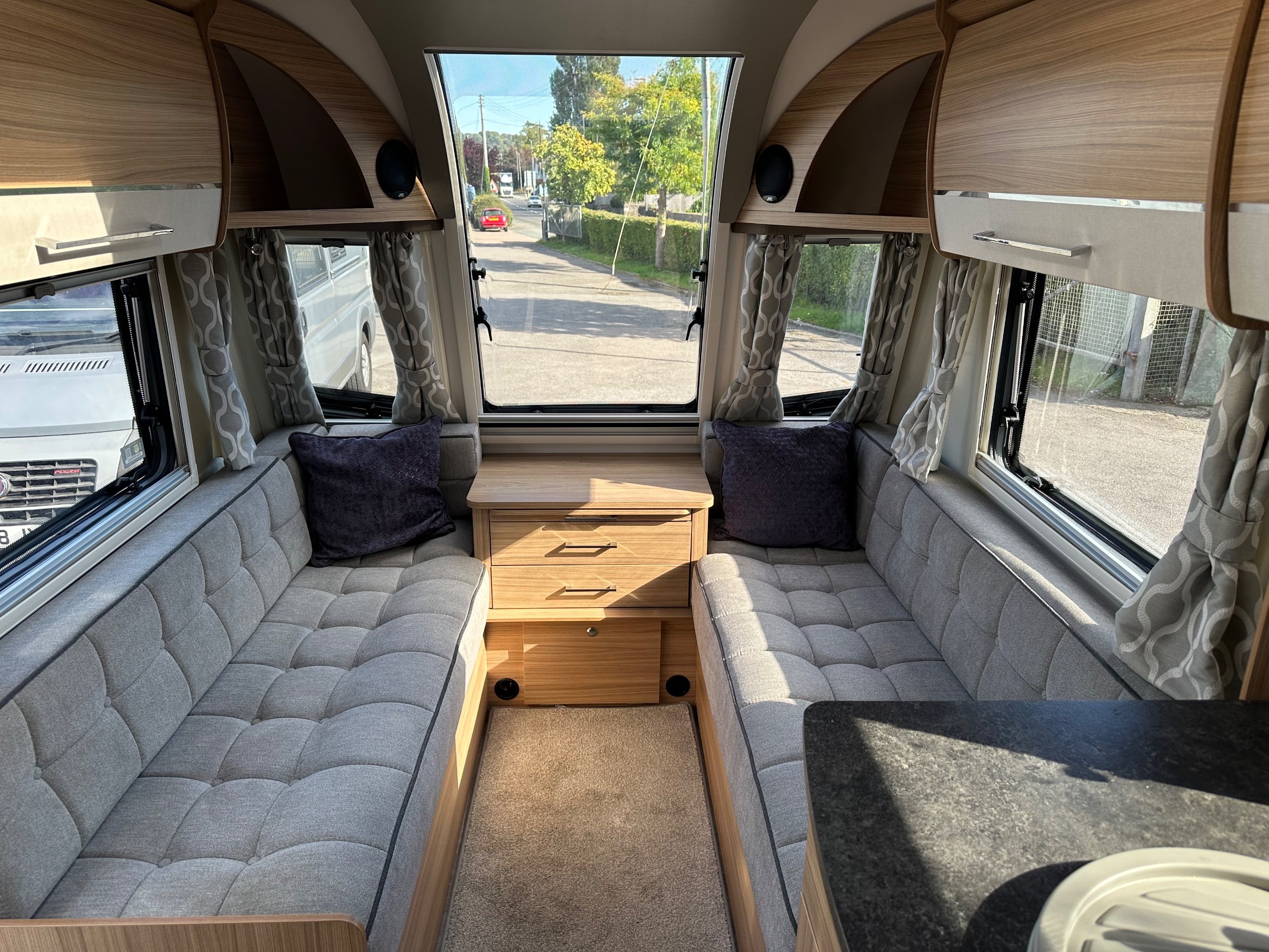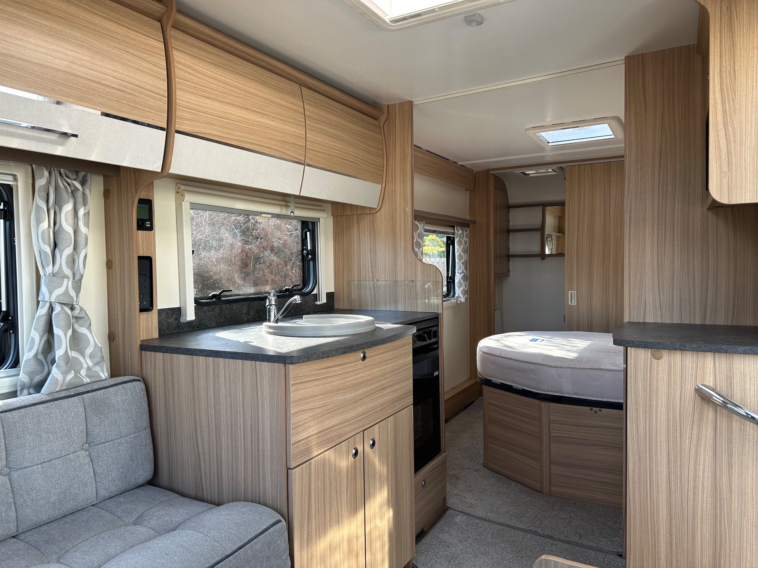 2022 Bailey Phoenix 644 transvers island bed layout with end washroom and 5'11" front seats supplied by us with full service history and motor mover fitted.