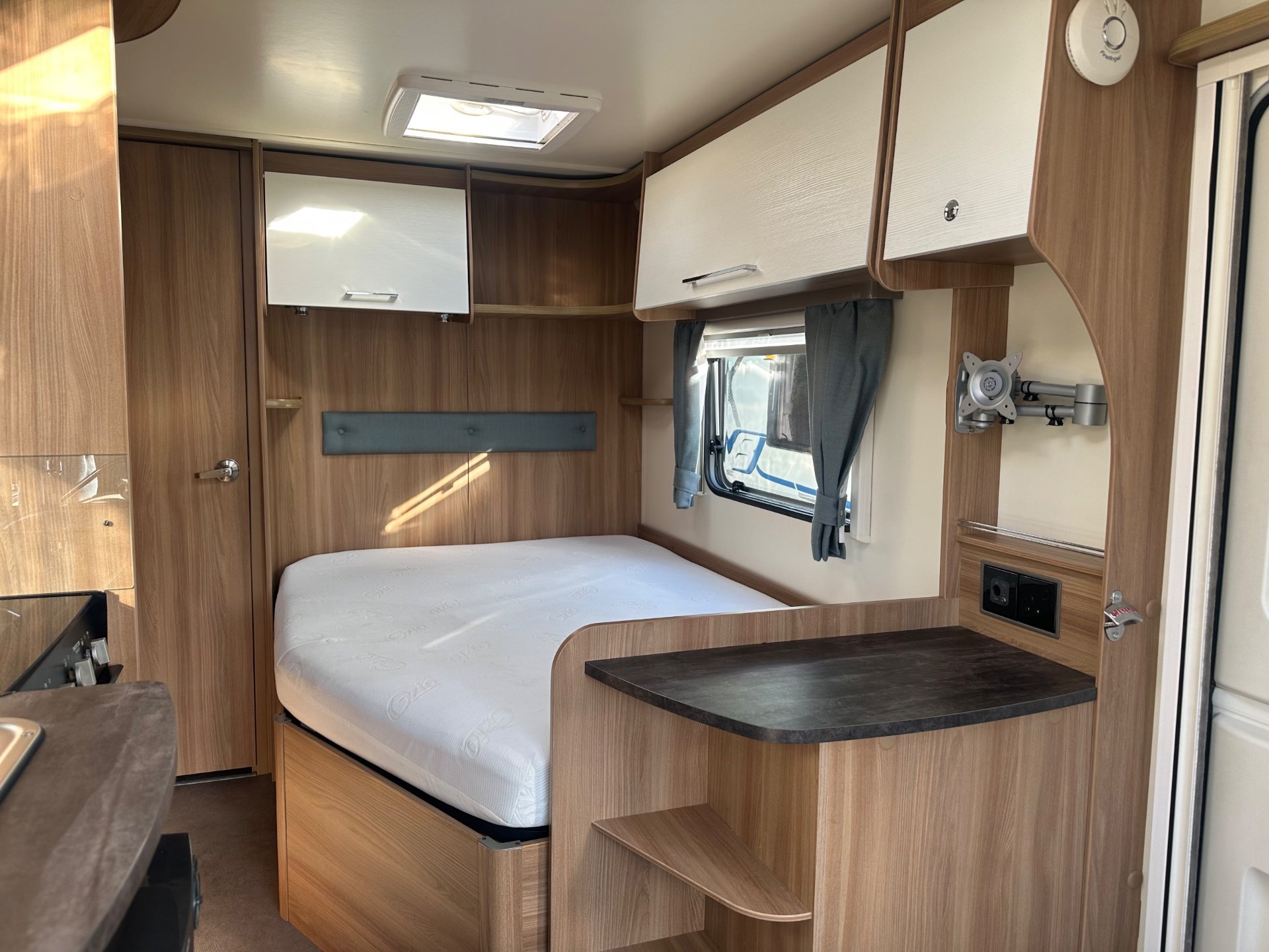 2017 Bailey Pursuit 430/4 with motor mover Baileys small compact fixed bed with end washroom, ideal caravan for couples who want a fixed bed that don't want to tow a larger caravan, it is the only caravan built at this length that offers the washroom across the rear.