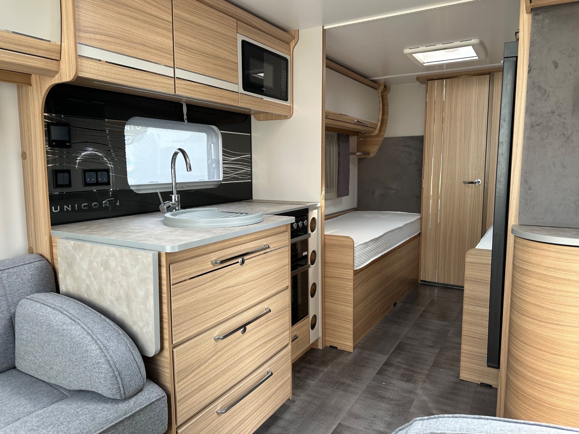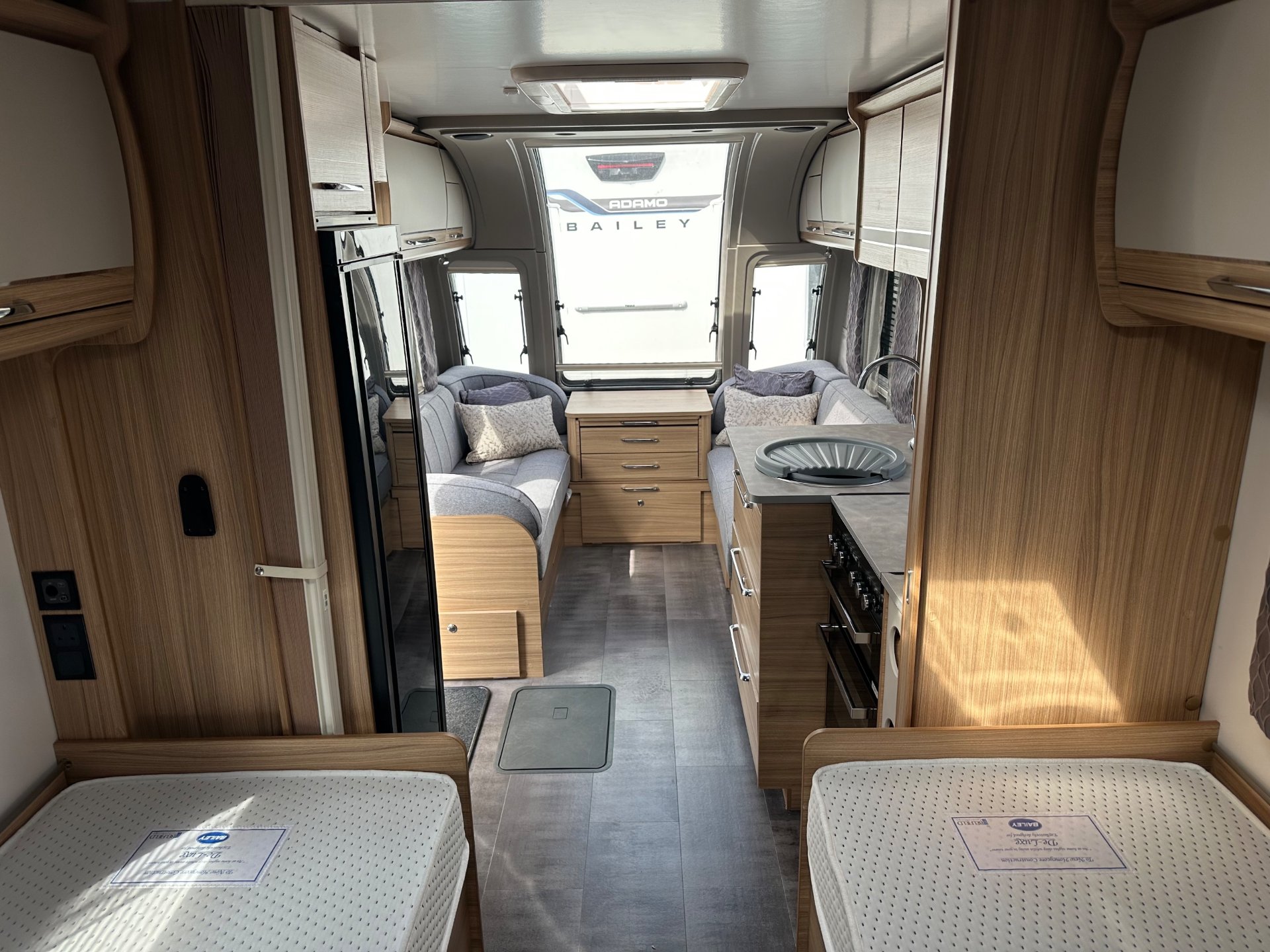 2022 Bailey Unicorn Cadiz with motor mover fitted supplied and serviced by us from new one owner caravan with the popular twin single bed layout with end washroom.