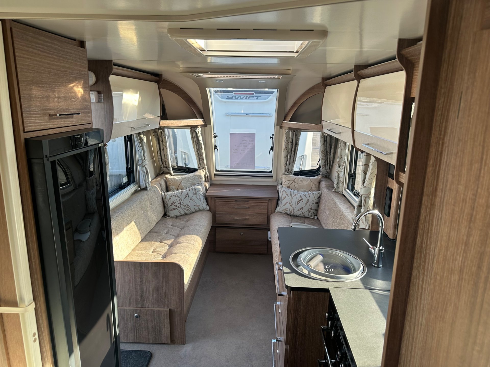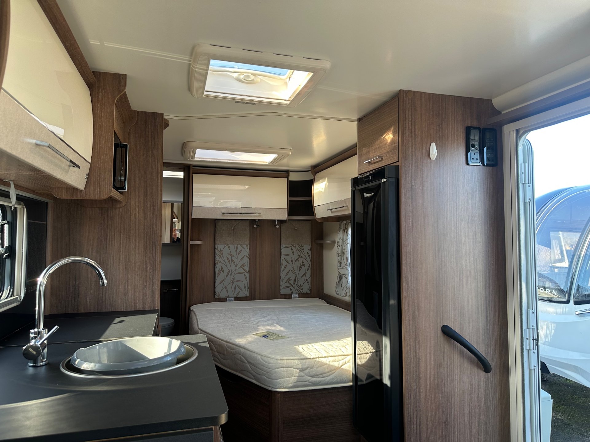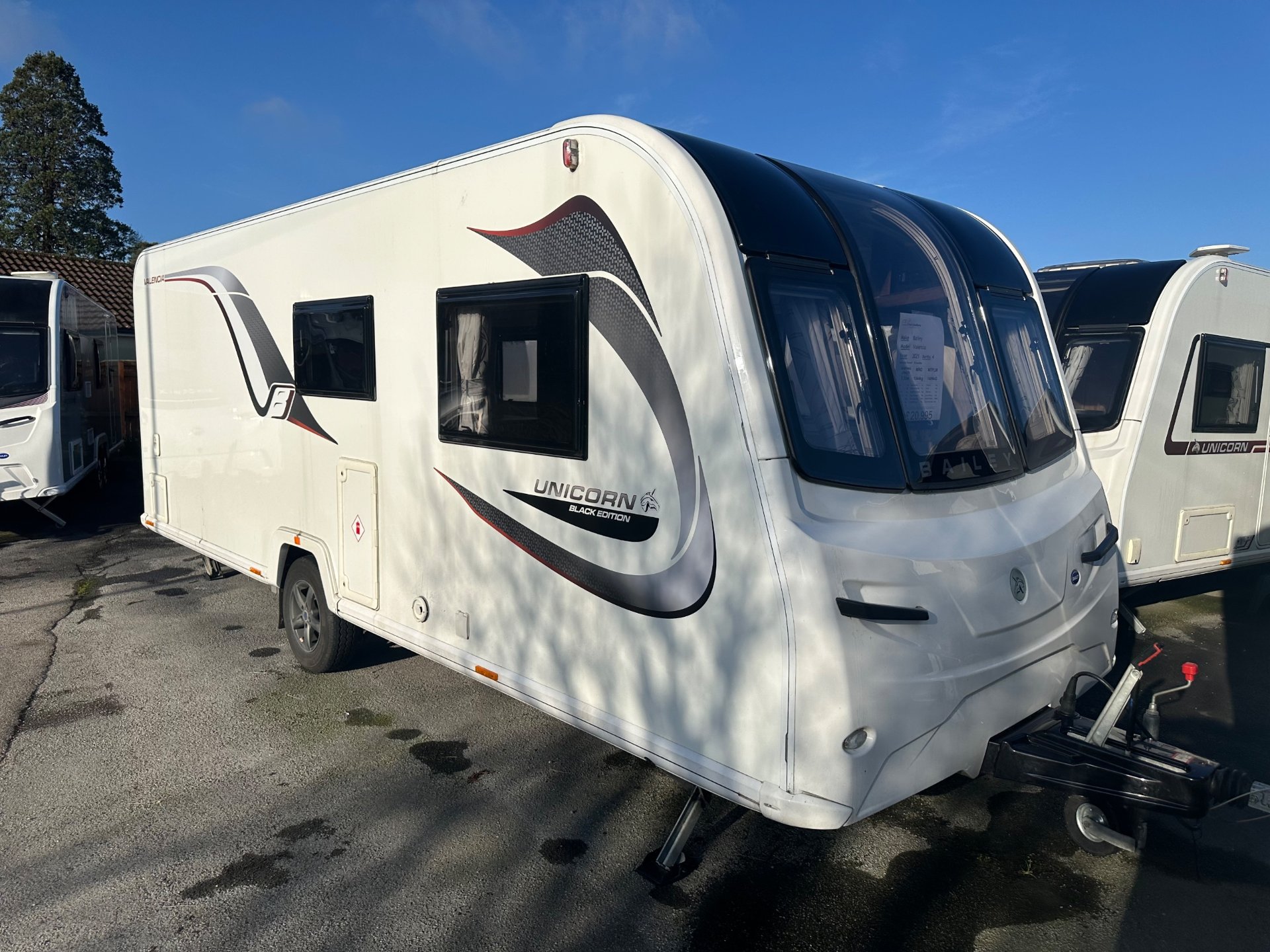 2021 Bailey Unicorn Black Edition Valencia the classic French bed layout but with long front seats that can be used as 2 singles and a 6'5" double bed with all the usual Unicorn fixture and fittings.