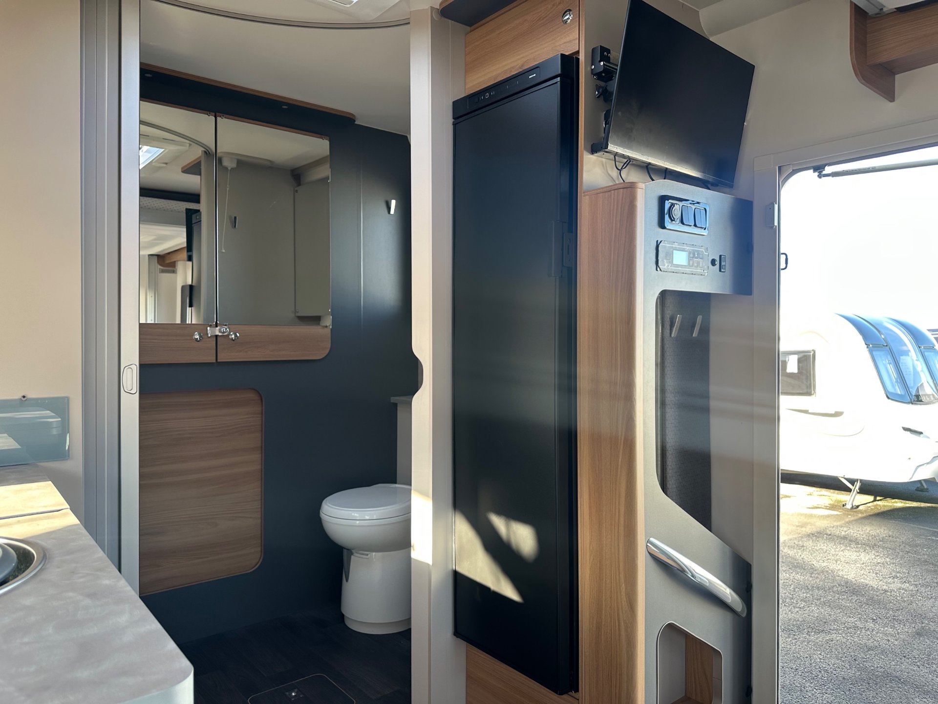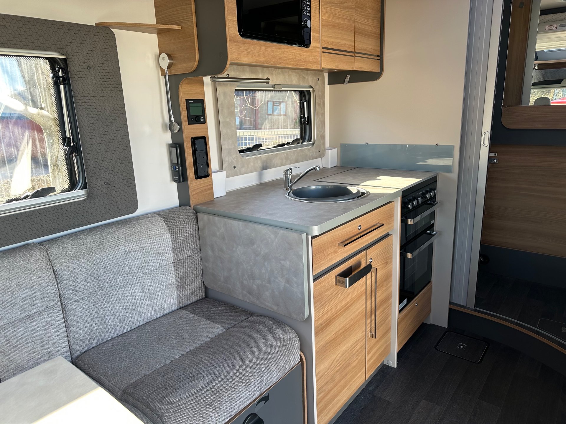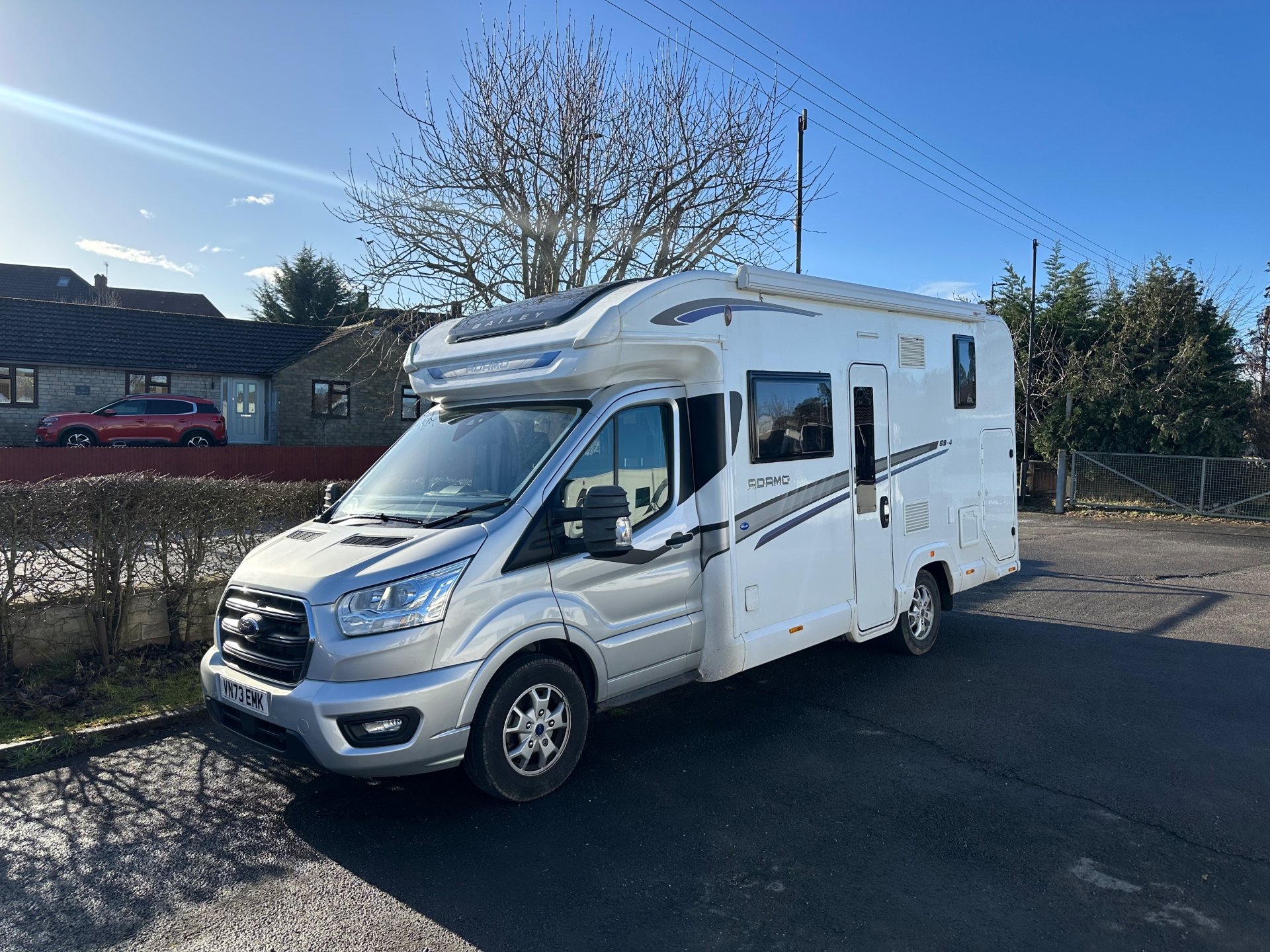 just arrived 2024 model Adamo 694 supplied and serviced by us from new full Bailey and Ford service history. This has been a very well looked after motorhome with lots of options fitted including Fiamma F45 awning, Truma Air-conditioning, micro wave pack, lithium battery, upgraded Pioneer radio and sat nav safe and other minor tweaks to make this a ready to go motor home for your new adventures. Based on the 160 bhp automatic transit
