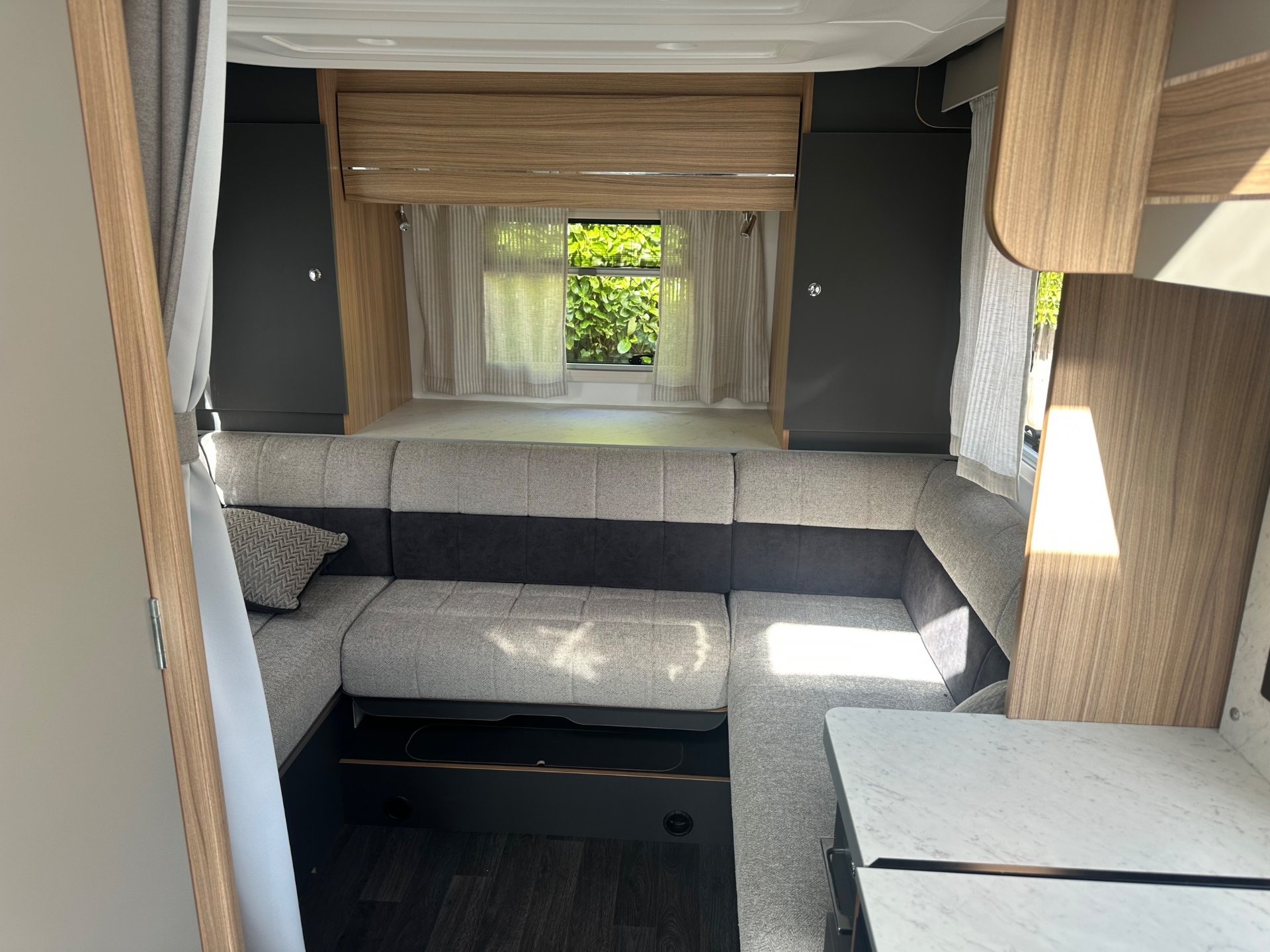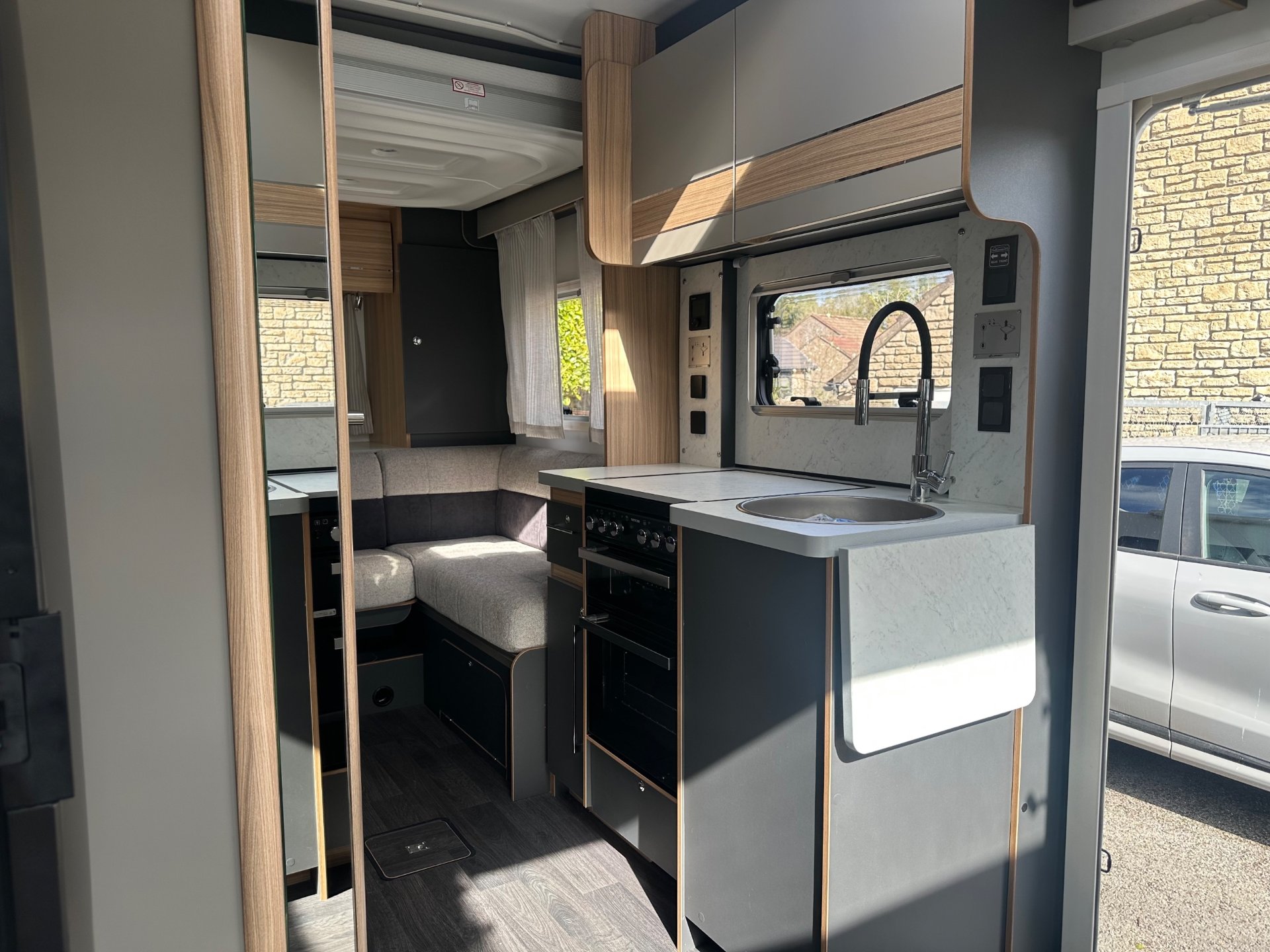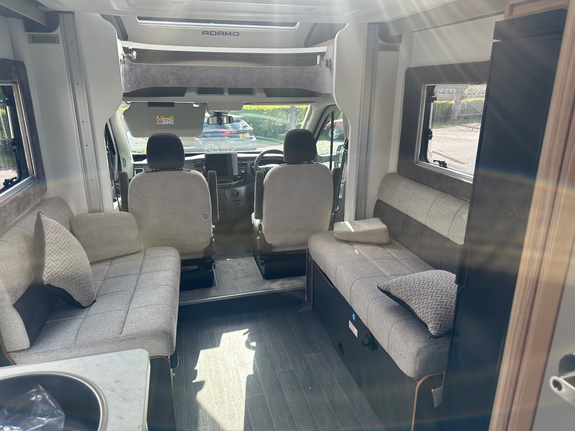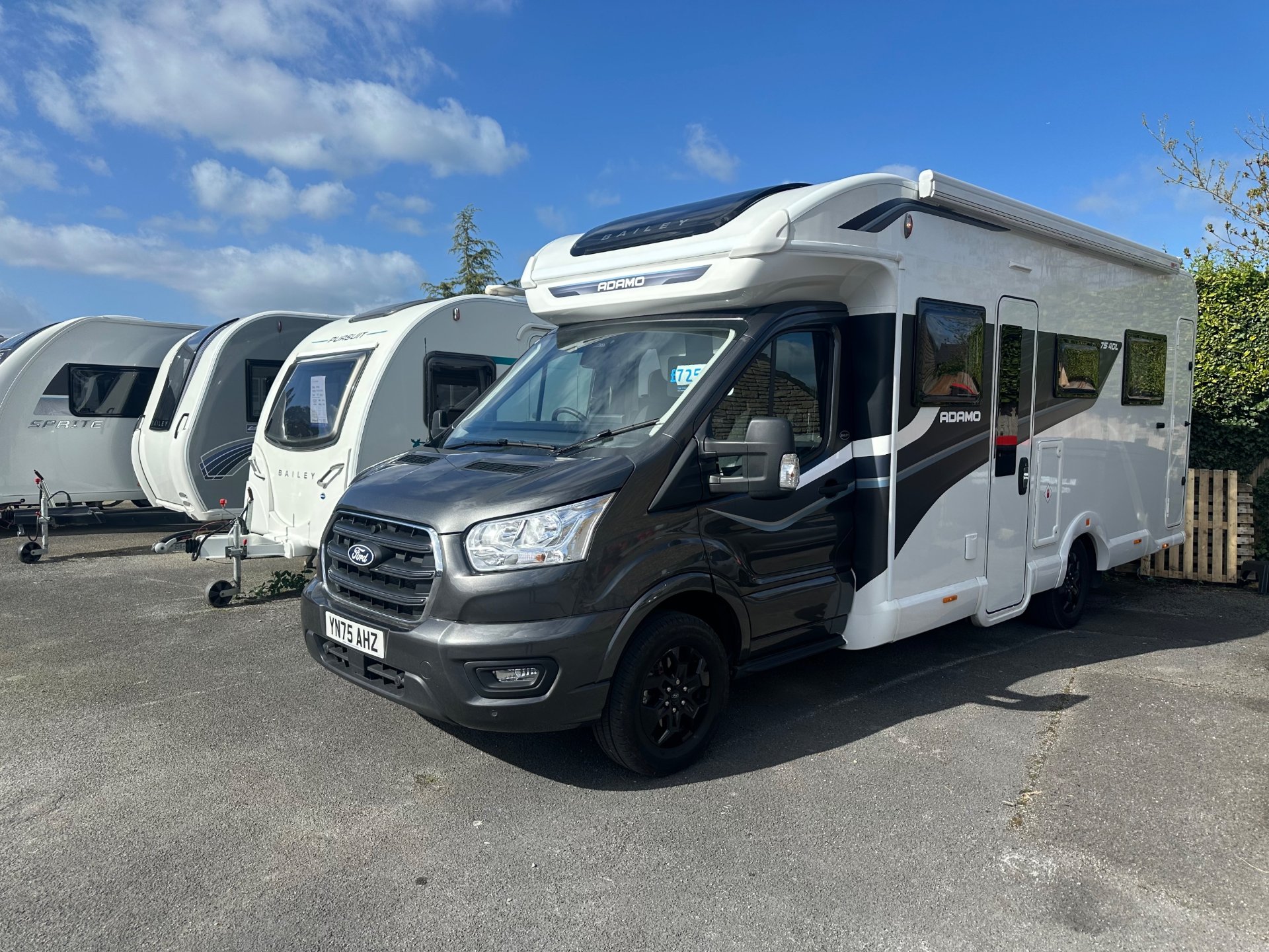 2026 New model Adamo 754 dl with only 1656 miles from new save on new price with fiamma canopy fitted Baileys twin drop down bed family layout at 3500kg with 4 travelling belts